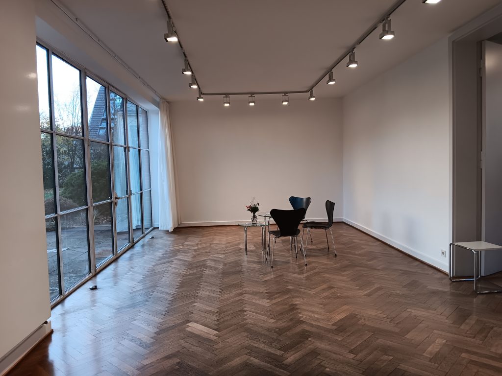 Apesar dos limites dos recursos financeiros, a casa ficou espaçosa e aberta, a arquitetura clara é focada no essencial e conecta os moradores e visitantes à natureza. A transição do interior para o jardim foi feita no nível do solo, sem degraus, e por meio do terraço de convivência e um gramado no jardim projetado por Herta Hammerbacher. O grande jardim faz a transição discreta para a paisagem circundante e representa uma zona de transição entre a casa e a paisagem do parque na margem oposta do lago no Obersee.